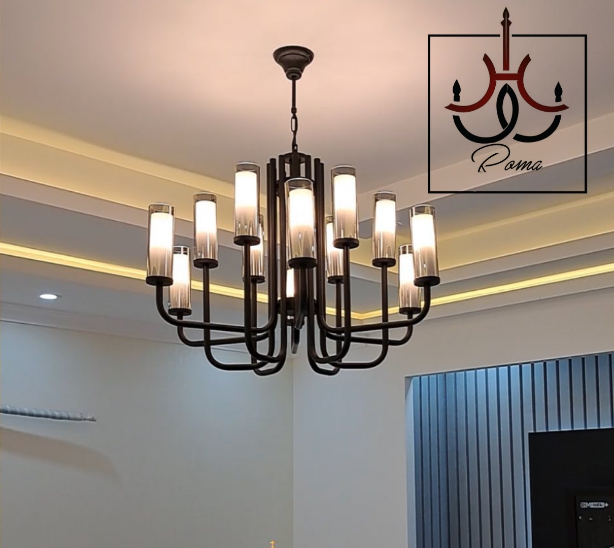 لوستر مدرن لومینا ۱۲ شعله رنگ مشکی مناسب پذیرایی | کد O-123 | برند رومالوستر