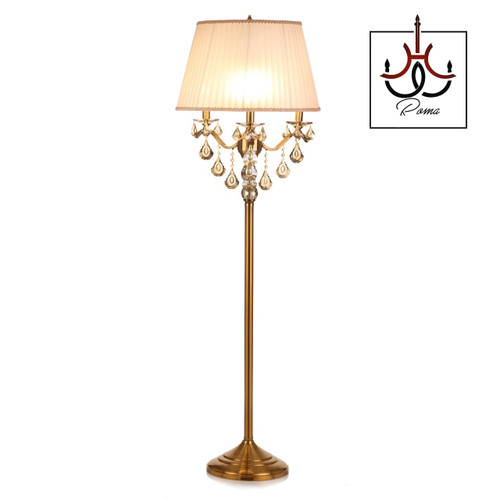 آباژور ایستاده سه شاخه یلدا کریستالی طلایی | مناسب پذیرایی و اتاق خواب | برند رومالوستر