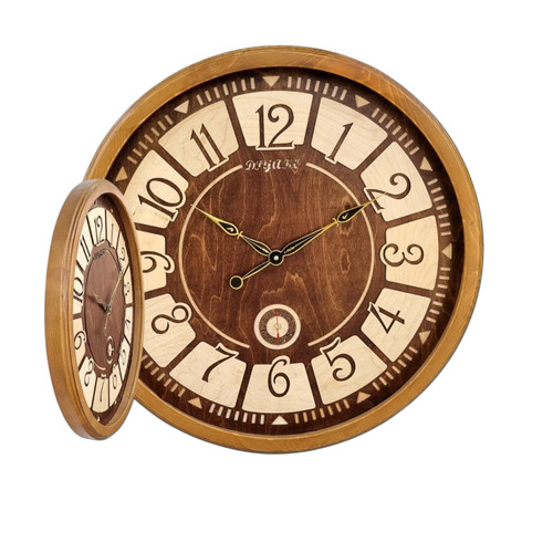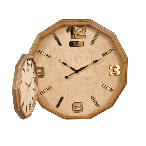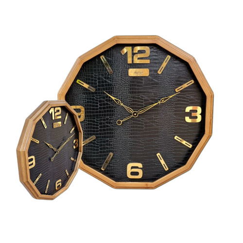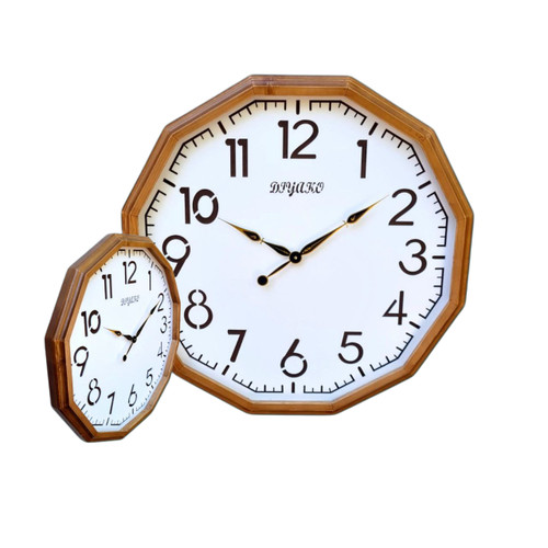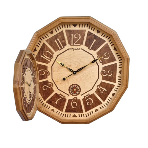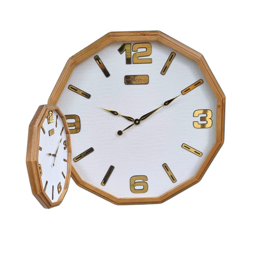 ساعت دیواری ۱۲ ضلعی چوبی دوبل کد 75122 | موتور ژاپنی و گارانتی ۱۰ ساله