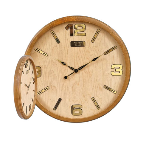 خرید ساعت دیواری چوبی قهوه‌ای آرامگرد موتور ژاپنی – کد 808