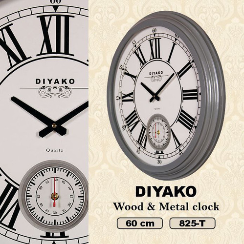 ساعت دیواری دیاکو دو موتوره بدنه چوب رنگ طوسی – کد 825