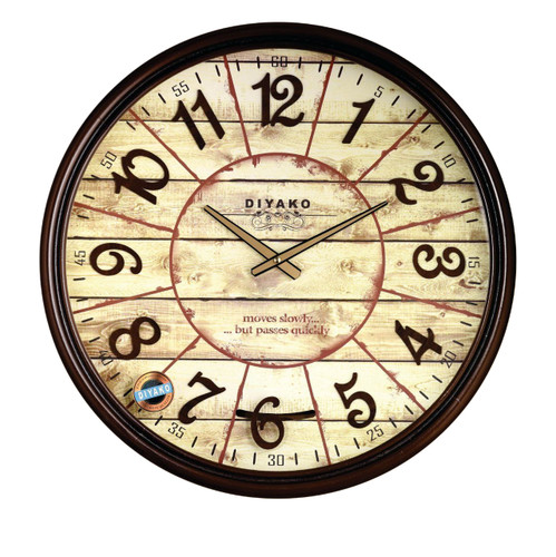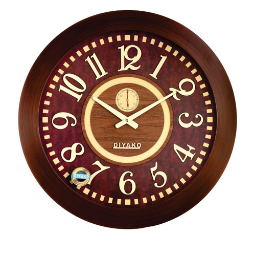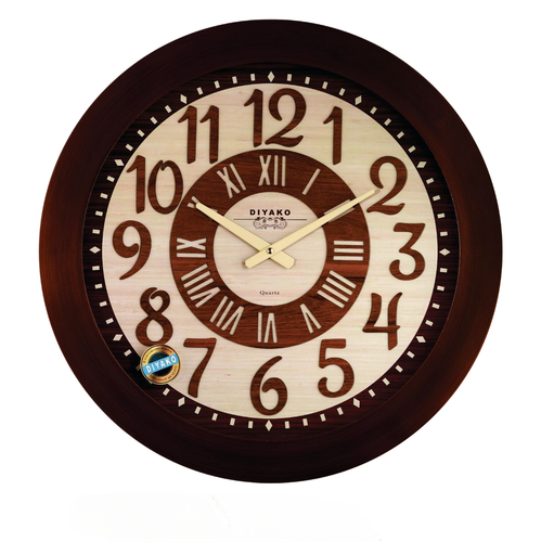 خرید ساعت دیواری چوبی قهوه‌ای دیاکو دو موتوره شیک و مدرن – کد 825
