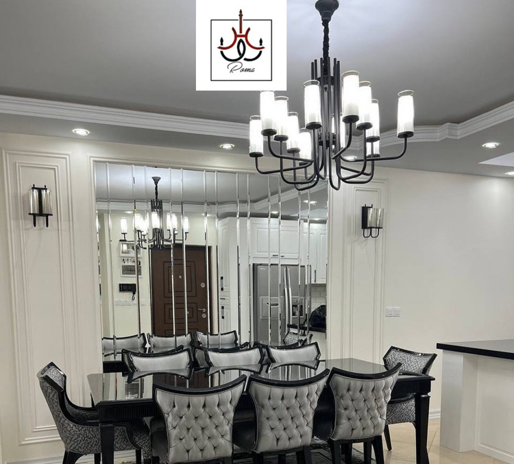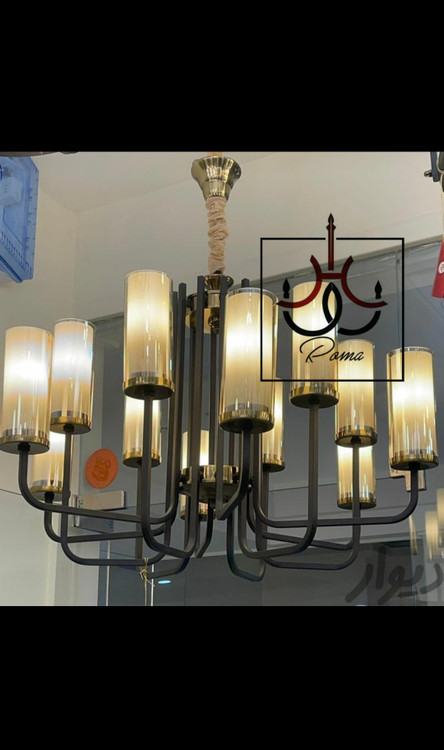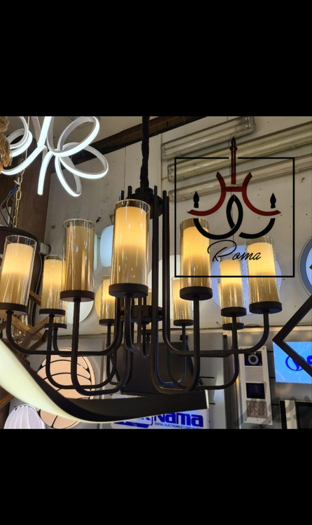 لوستر مدرن لومینا دوازده شاخه مشکی استاتیک با گلس های وارداتی نمونه تولید لوسترروما با متریال اورجینال درجه یک