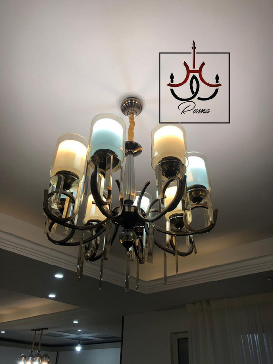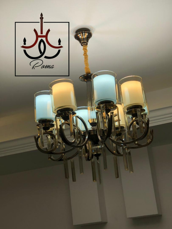 لوستر مدرن زولبیا 8 شاخه رنگ نسکافه ای نمونه تولید لوسترروما با متریال اورجینال درجه یک