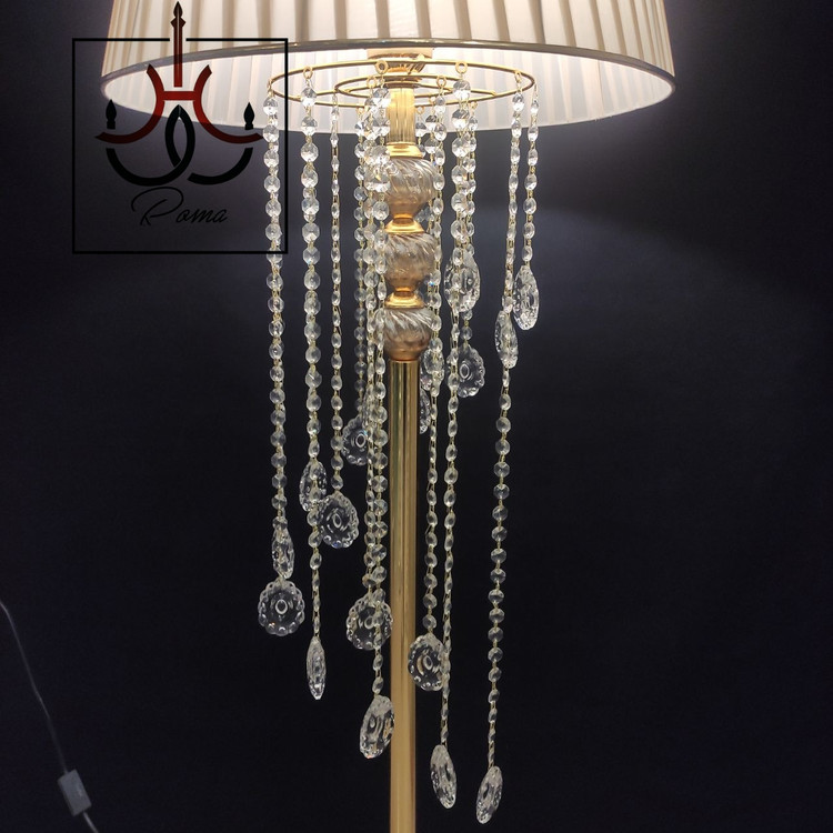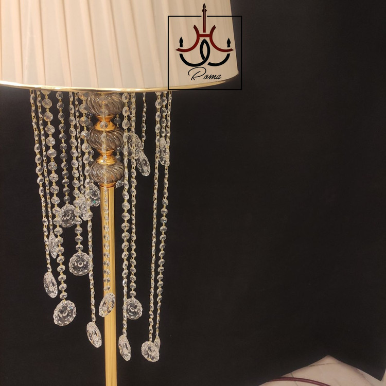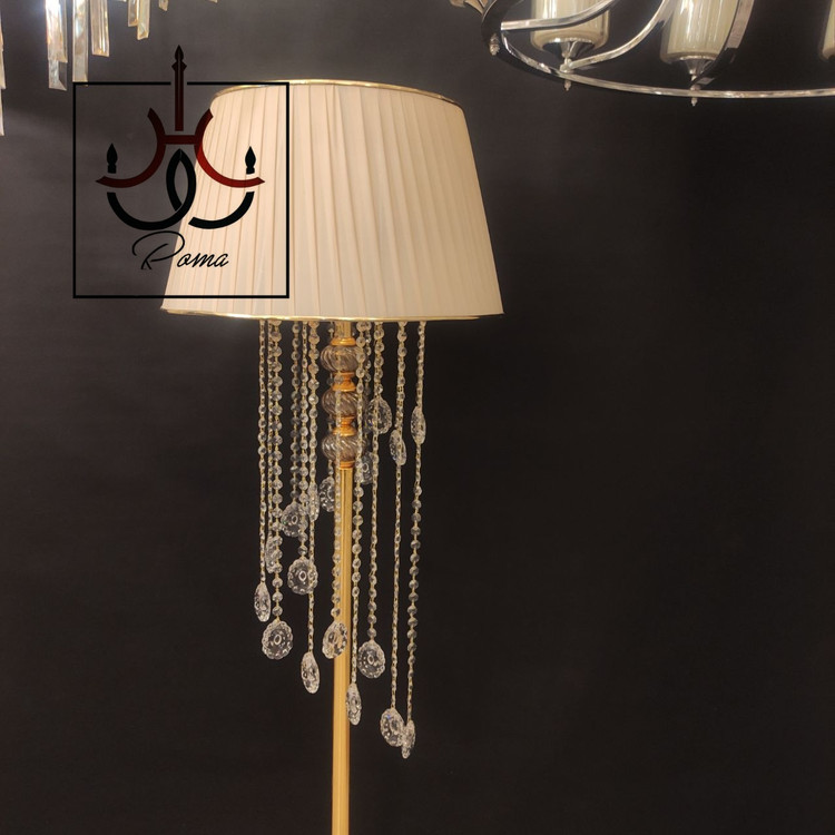 آباژور مدرن کنار سالنی ایستاده طلایی نمونه تولید لوسترروما با متریال اورجینال درجه یک