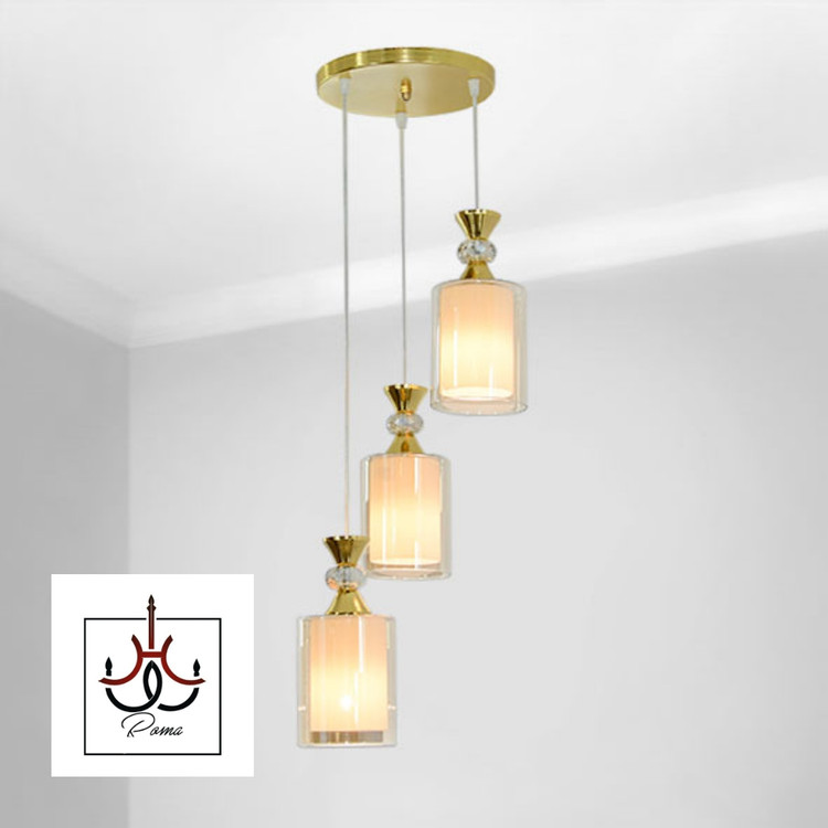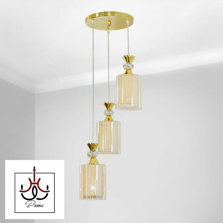 لوستر سه شعله مدرن | مناسب اتاق خواب و آشپزخانه رنگ طلایی| کد R-31 | برند رومالوستر