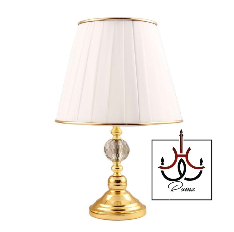 آباژور رومیزی مدرن کریستالی | رنگ طلایی کلاهک سفید تک گوی | برند رومالوستر