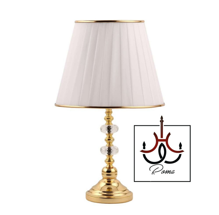 آباژور رومیزی کریستالی بدنه طلایی با کلاهک سفید | مناسب اتاق خواب و نشیمن | برند رومالوستر