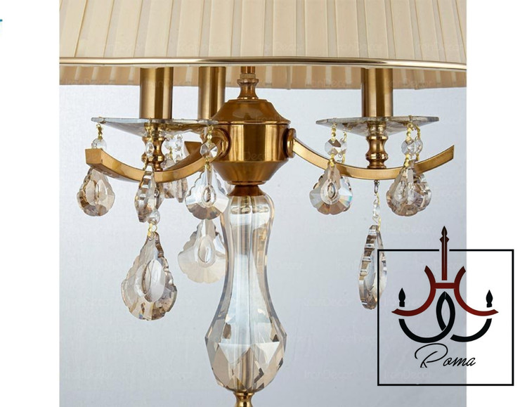 آباژور مدرن رومیزی مدل سه شاخه یلدا با ستون کریستالی برند رومالوستر