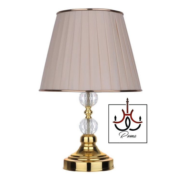 این آباژور رومیزی خاص، محصولی از مجموعه حرفهای کارخانه لوستر رومالوستر است که با دو گوی طلایی و شید نسکافهای طراحی شده.