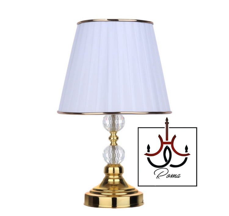 آباژور رومیزی دو گوی کلاسیک پایه طلایی با کلاهک سفید | مناسب اتاق خواب و میز کنسول | برند رومالوستر