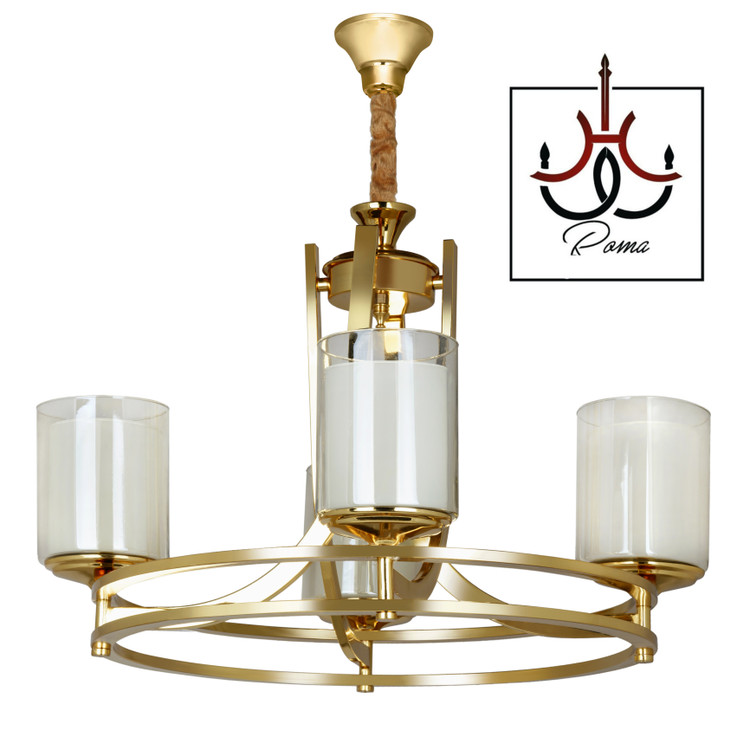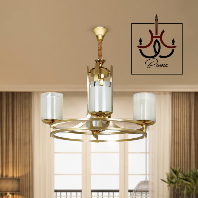 لوستر مدرن عصایی دورینگ چهار شاخه طلایی مناسب اتاق خواب و آشپزخانه | برند رومالوستر | کد AD-41