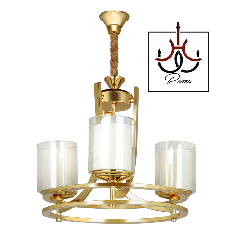 لوستر مدرن عصایی دورینگ سه شاخه طلایی مناسب آشپزخانه و اتاق خواب | برند رومالوستر | کد AD-31