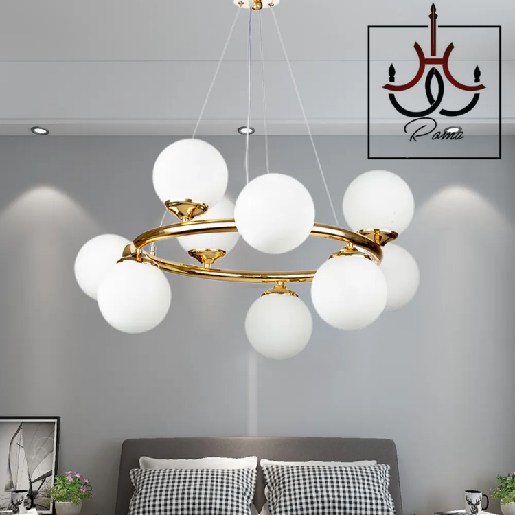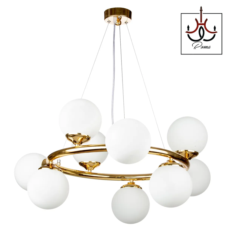 لوستر مینیمال گرد ۹ شعله طلایی با فرم دایرهای و طراحی ساده و در عین حال بسیار خاص، انتخابی شیک و کاربردی برای فضاهای خانگی یا اداری است.