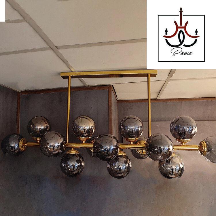 لوستر لاینر مولکولی ۱۴ شعله با طراحی کشیده و مدرن، یک انتخاب جسورانه و متفاوت برای فضاهایی است که به نور زیاد و طراحی چشمگیر نیاز دارند.