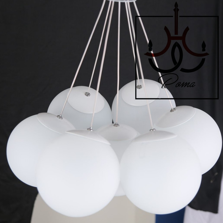 ترکیب فرم مینیمال با چیدمان ابریمانند و حبابهای سهرنگ (عسلی، دودی، سفید مات) زیبایی خاصی به فضا میده.