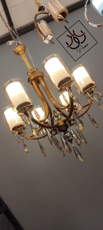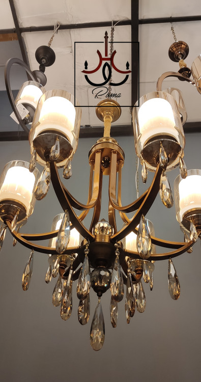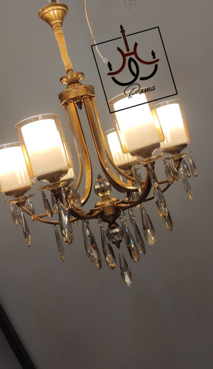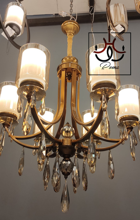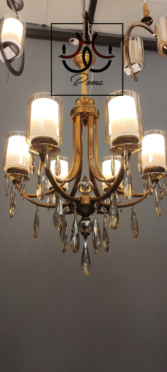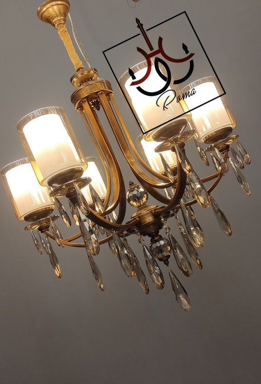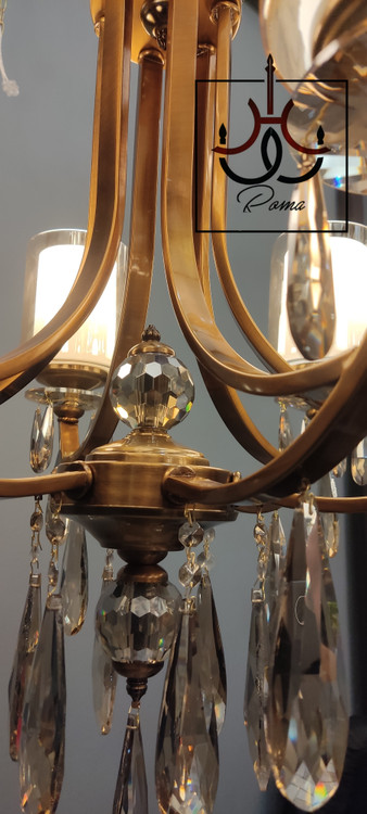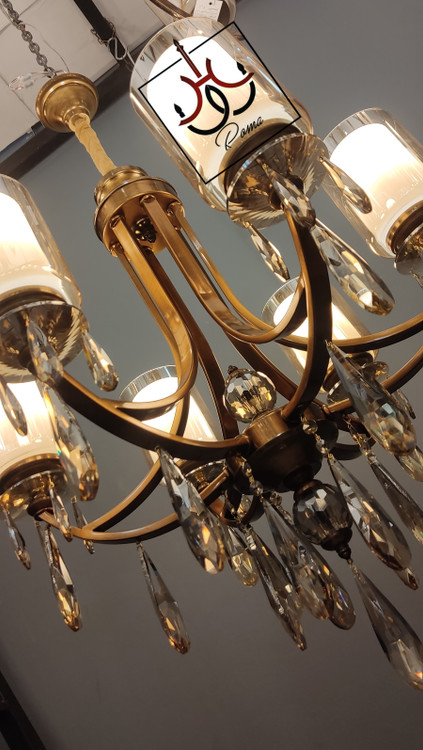 لوستر آویز مدرن کریستالی بامبو 6 شاخه نسکافه ای نمونه تولید لوسترروما با متریال اورجینال درجه یک