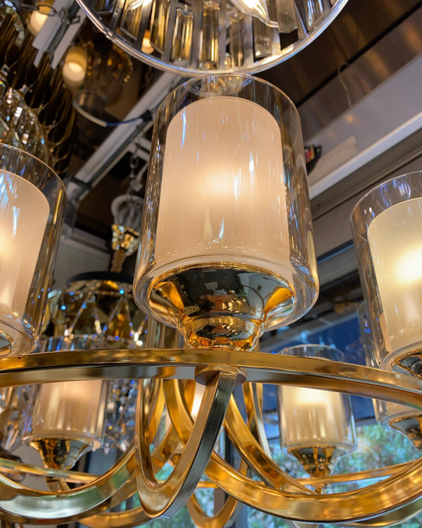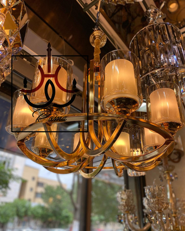 لوستر لهستانی مدرن عصایی هشت شاخه طلایی گارانتی اورجینال لوسترروما