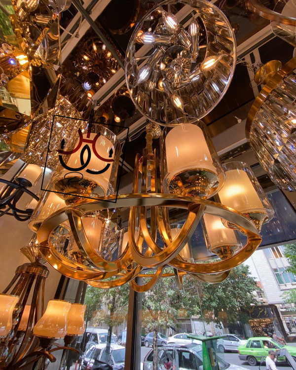 لوستر مدرن عصایی هشت شاخه نمونه تولید لوسترروما با متریال اورجینال