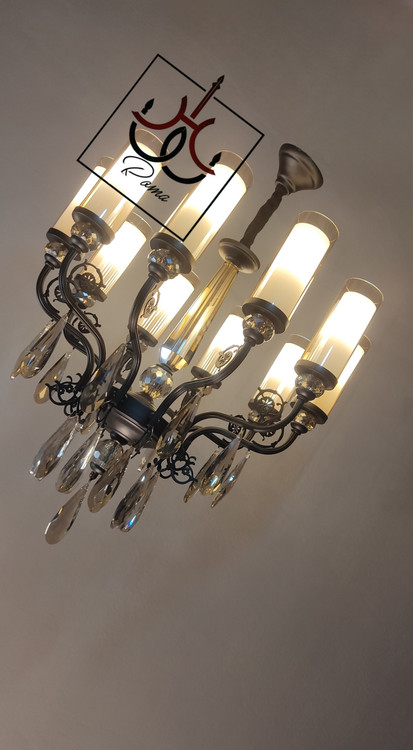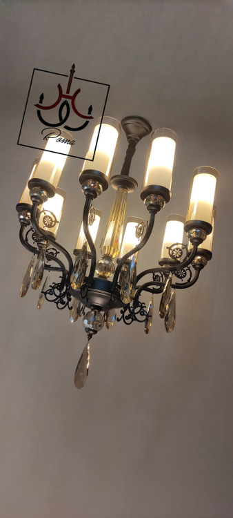 بدنه فلزی مقاوم با آبکاری مشکی، ضد زنگ و مقاوم در برابر تغییر رنگ. امکان تعویض آویزهای کریستالی با مدلهای دیگر برای ایجاد تنوع.