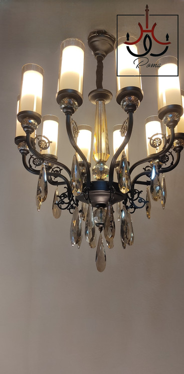 لوستر مدرن بهار ۱۰ شاخه مشکی | طراحی اختصاصی رومالوستر