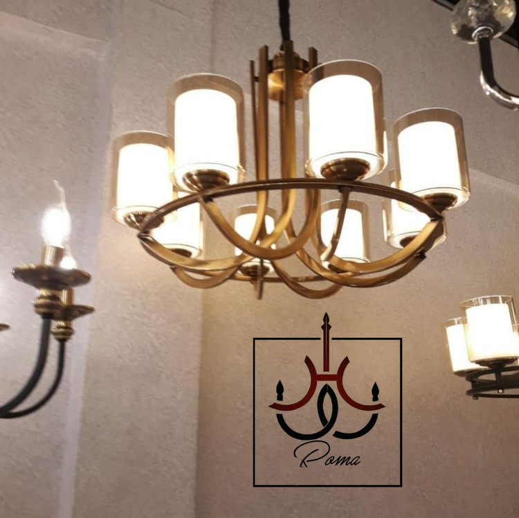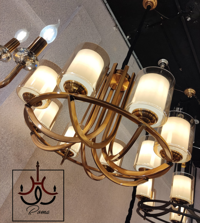 لوستر مدرن عصایی هشت شاخه رنگ نسکافه ای نمونه تولید لوسترروما با متریال اورجینال