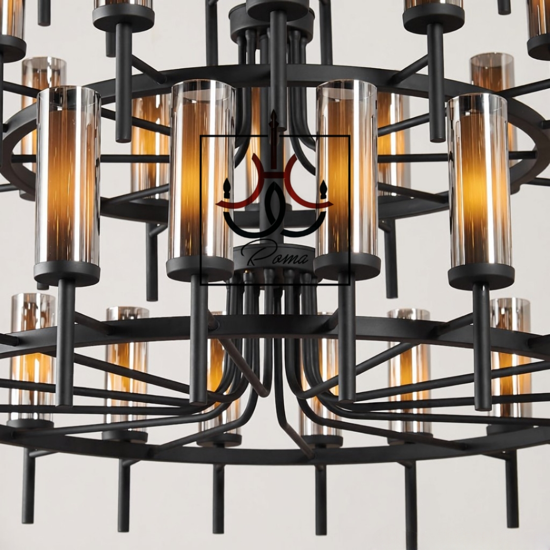 لوستر سه طبقه سایز بزرگ 52شاخه | آویز طبقاتی وید لابی هتل مرکز خرید برند رومالوستر