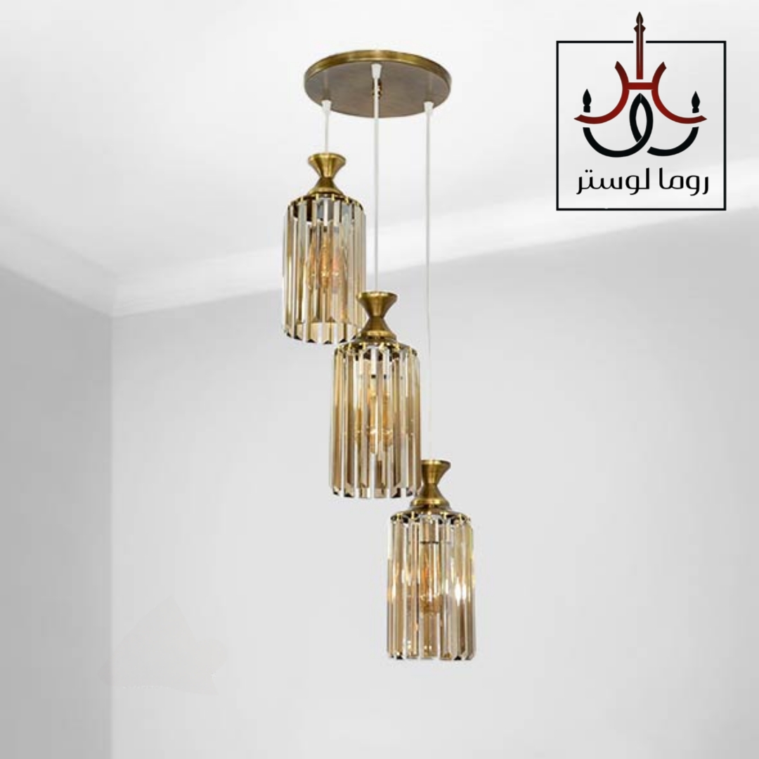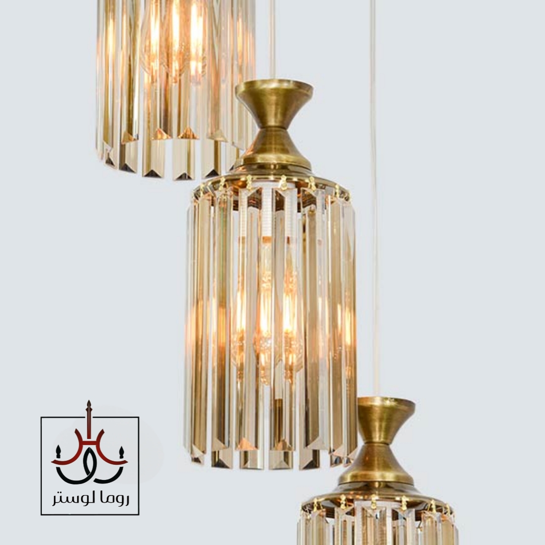 لوستر آشپزخانه و اتاق خواب برند رومالوستر آویز کریستالی رنگ زیتونی