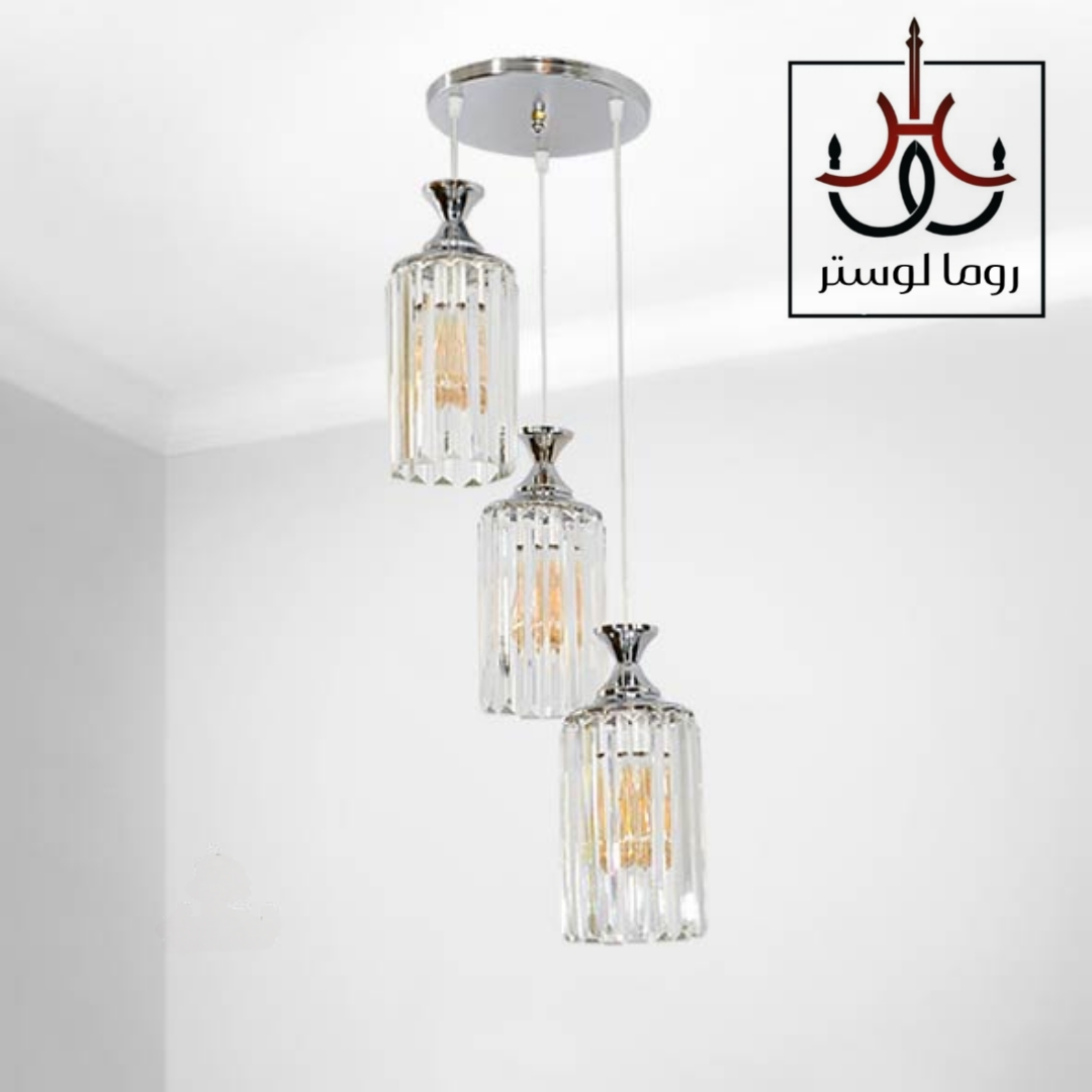 لوستر سه شعله سیلور کریستالی آویز آشپزخانه و اتاق خواب